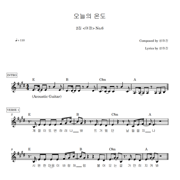 <오늘의 온도>의 악보입니다.