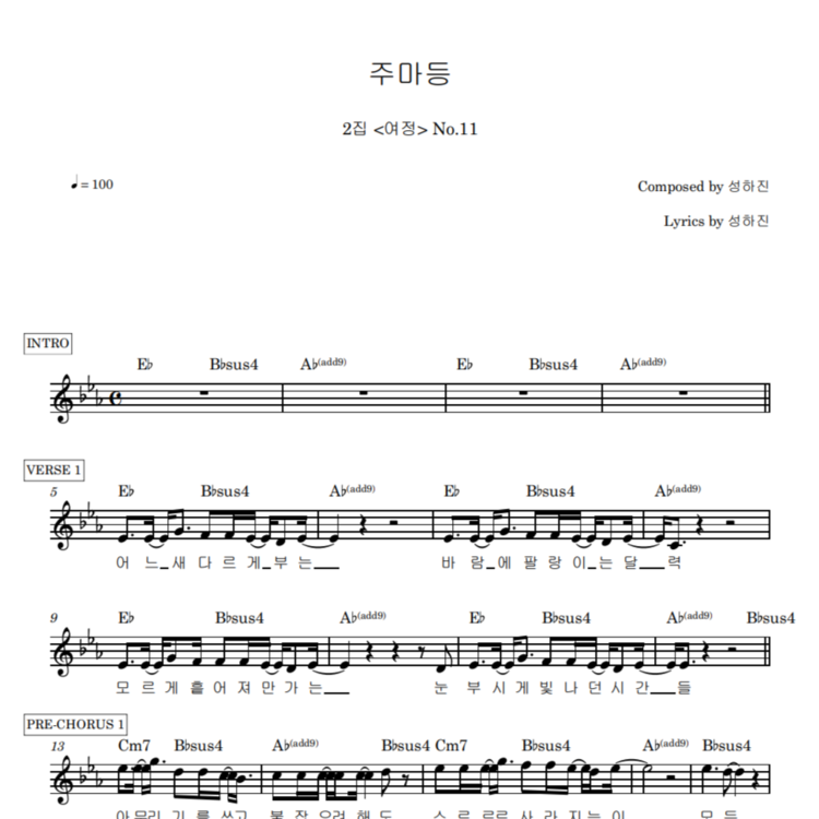<주마등>의 악보입니다.