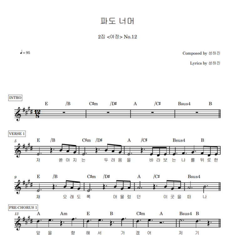 <파도 너머>의 악보입니다.